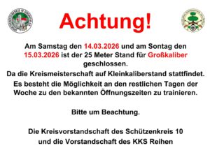 - 14.-15.03.2026 Kreismeisterschaften KK 50m