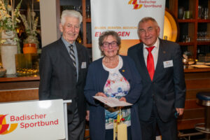Vierzehn Persönlichkeiten aus den Sportkreisen Heidelberg, Mannheim und Sinsheim wurden vom Badischen Sportbund Nord für jahrzehntelanges Wirken in ihren Vereinen mit Goldenen Verdienstnadeln ausgezeichnet. Beim Ehrungsabend im Restaurant „Olive“ des Heidelberger Tennis-Clubs war der Sportkreis Heidelberg Gastgeber, dessen Vorsitzender Dr. Peter Schlör charmante Begrüßungsworte sprach und darauf hinwies, dass es den Vereinen in den letzten Jahren immer schwerer falle, Vorstandsposten kompetent zu besetzen. Deshalb, so Schlör, sei zu empfehlen, dass auf diese Weise in Not geratene Vereine sich zusammenschließen und gemeinsame, hauptamtlich besetzte Verwaltungsbüros gründen.